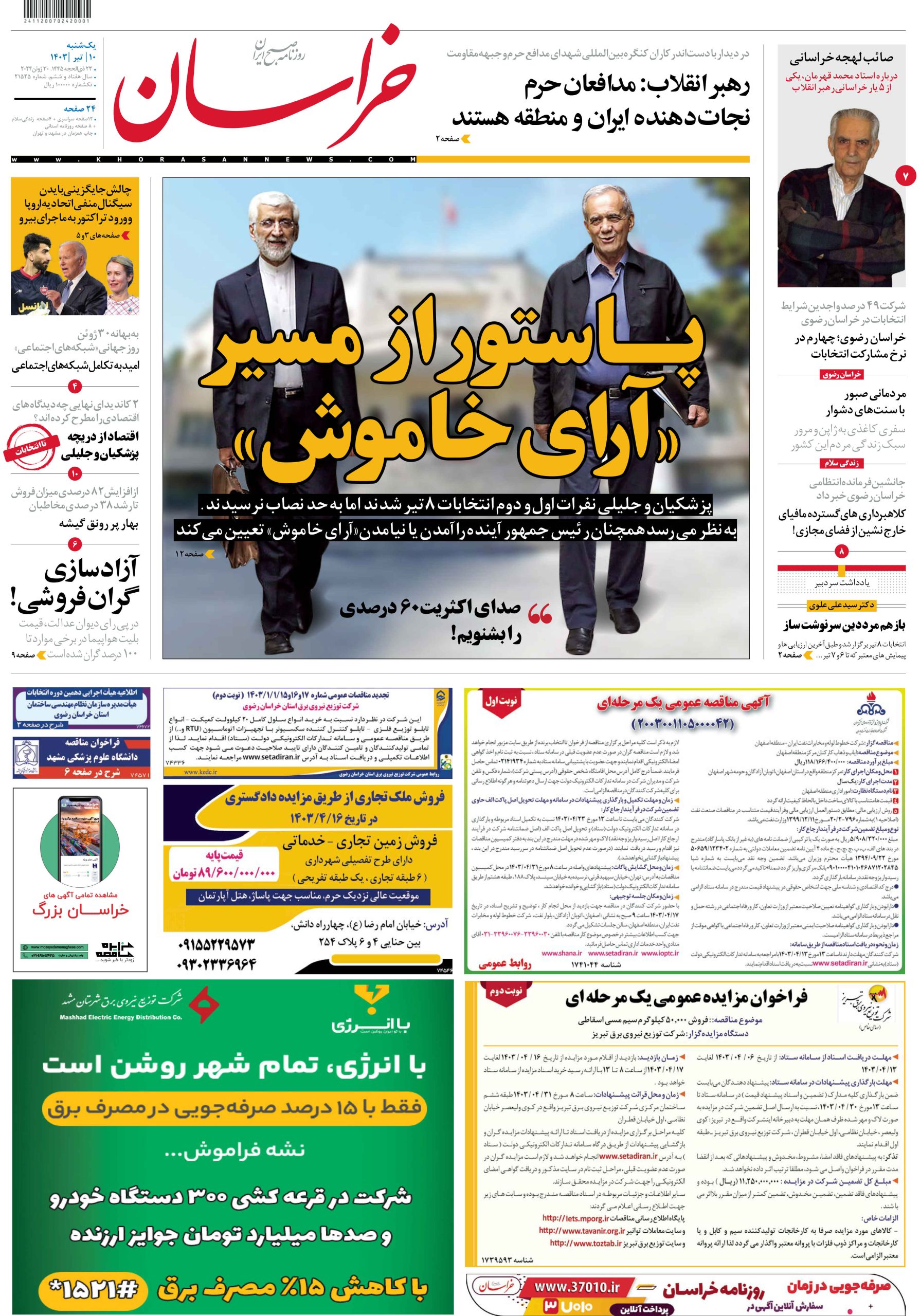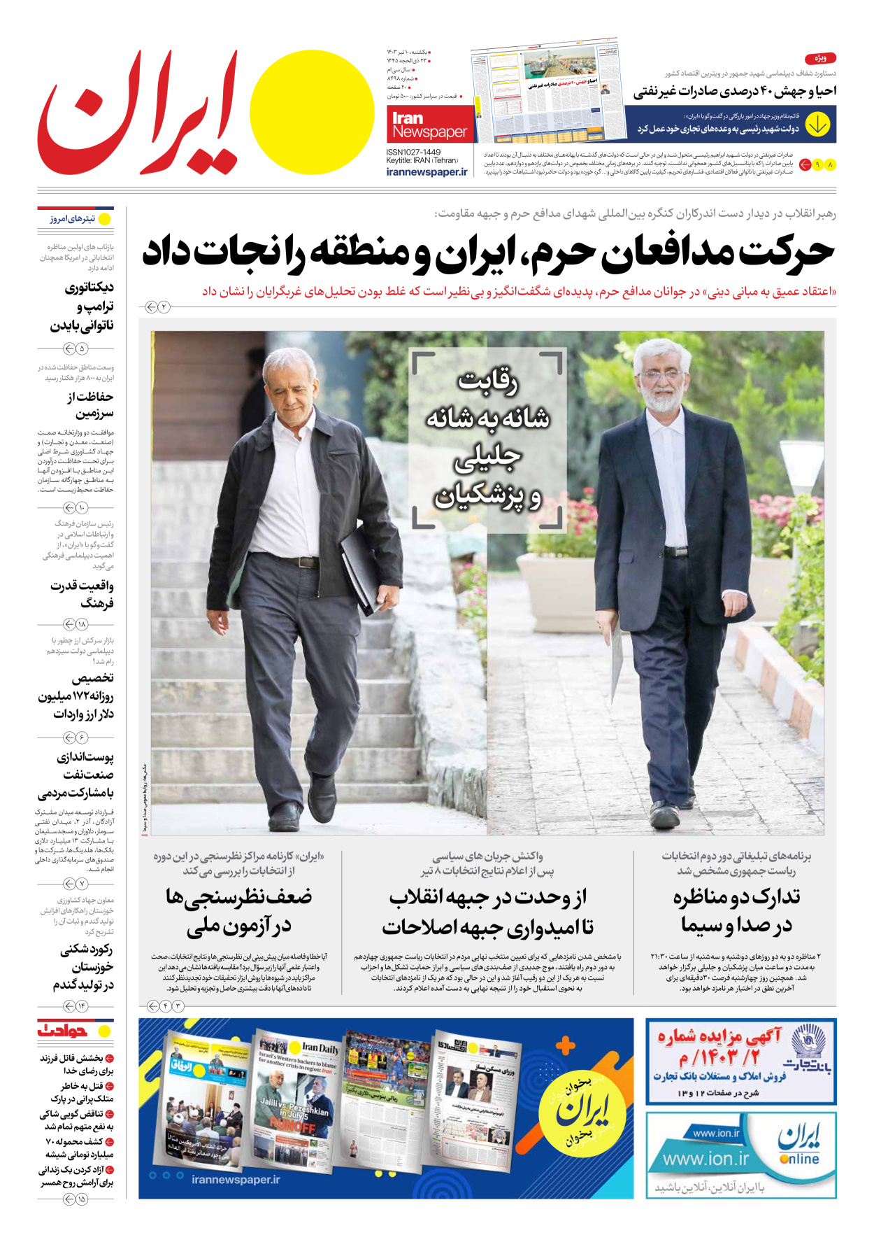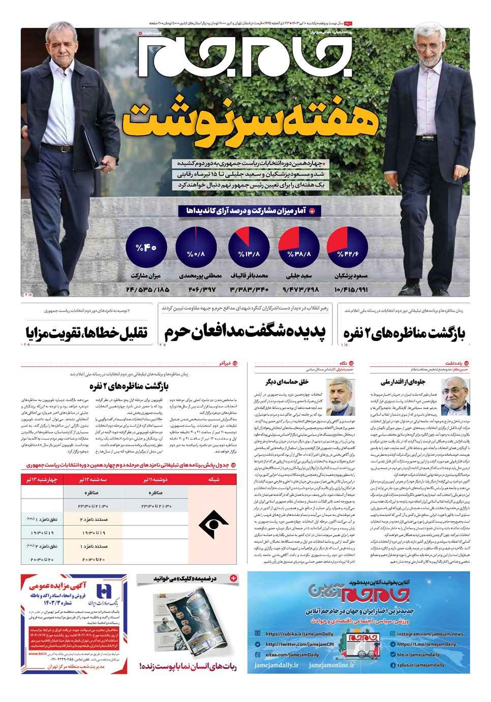 انتخابات ریاست جمهوری 1403 گیشه روزنامه ۱۰ تیر ۱۴۰۳ اخبار انتخاباتی مطبوعات امروز ۱۰ تیر ۱۴۰۳ انتخابات انتخابات ریاست جمهوری گیشه روزنامه