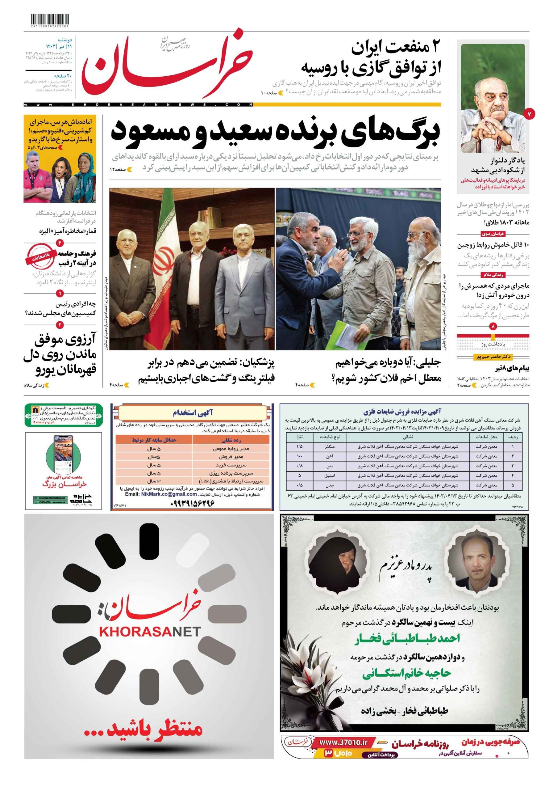 انتخابات ریاست جمهوری 1403 گیشه روزنامه ۱۱ تیر ۱۴۰۳ اخبار انتخاباتی مطبوعات امروز ۱۱ تیر ۱۴۰۳ انتخابات انتخابات ریاست جمهوری گیشه روزنامه