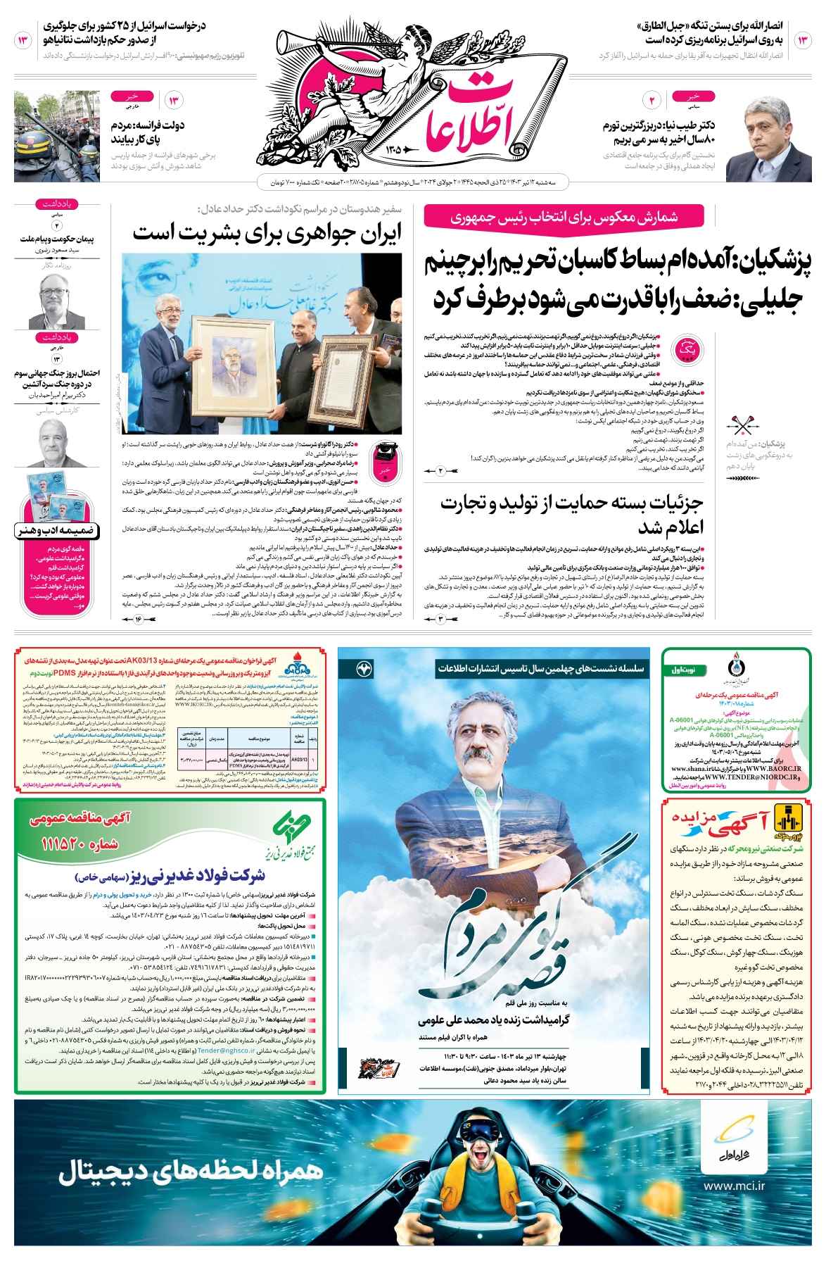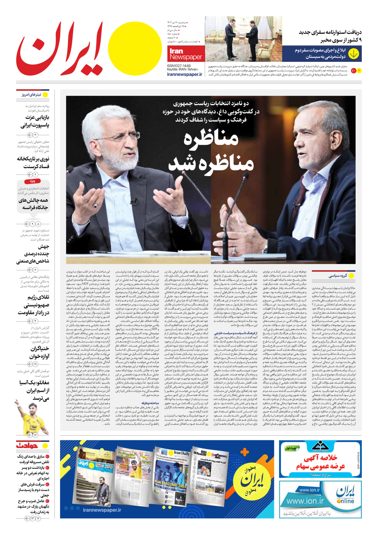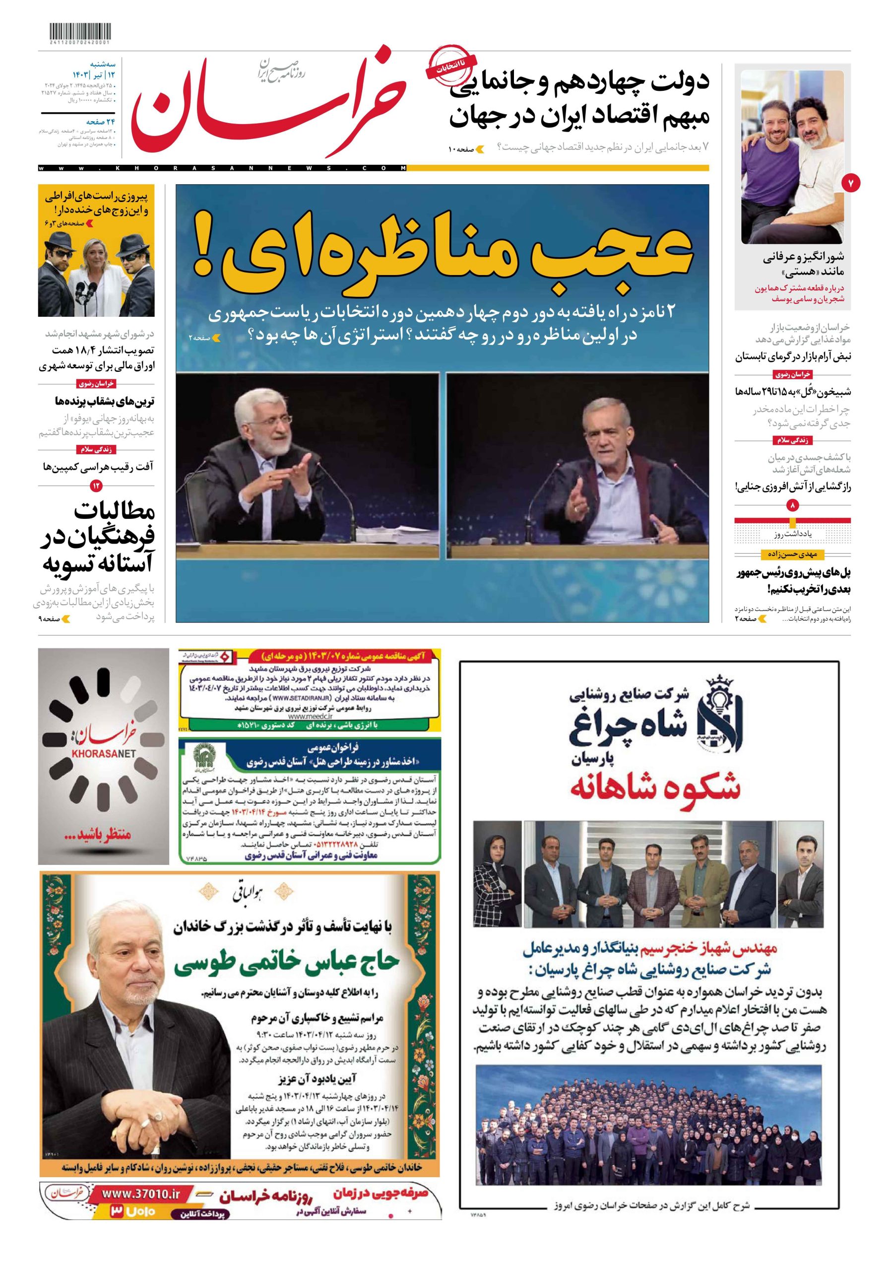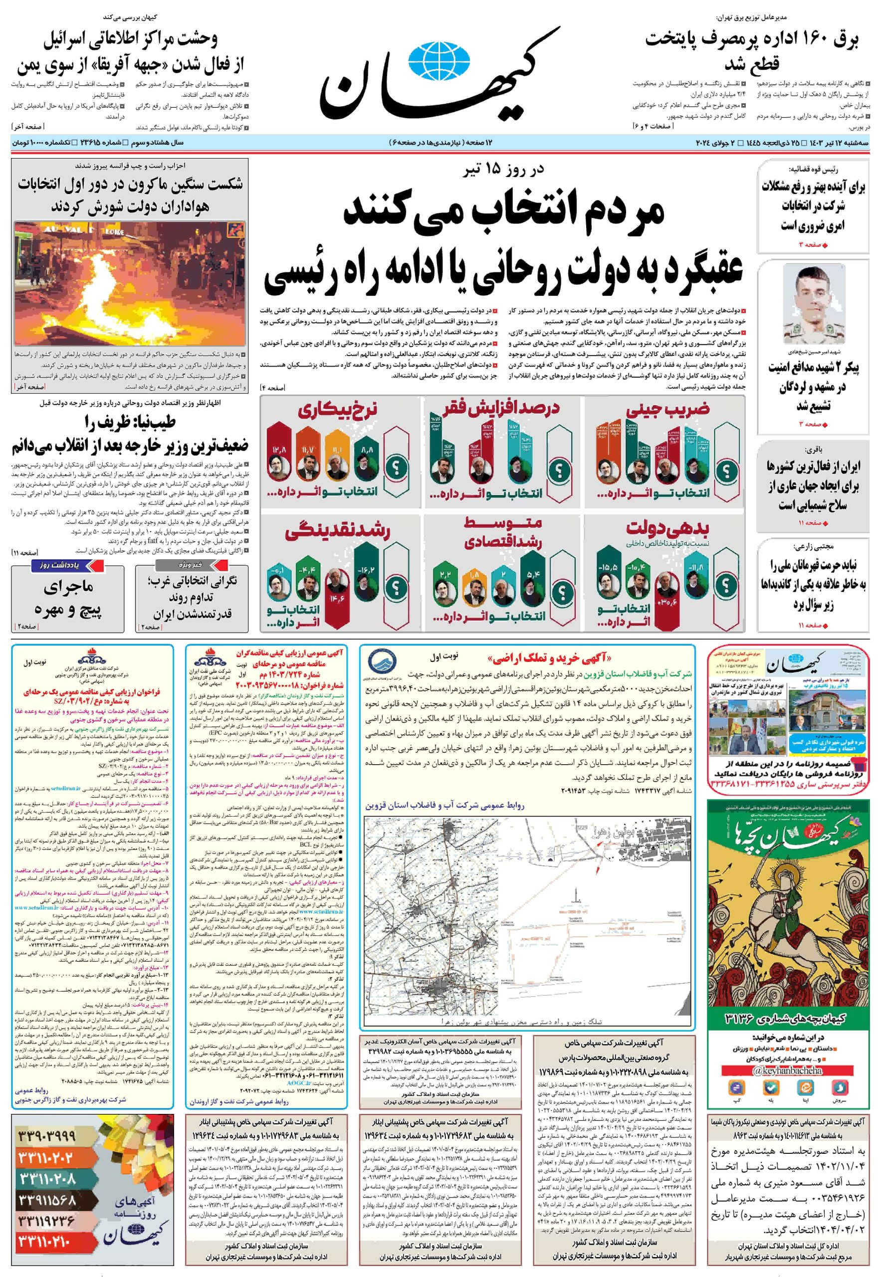 انتخابات ریاست جمهوری 1403 گیشه روزنامه ۱۲ تیر ۱۴۰۳ اخبار انتخاباتی مطبوعات امروز ۱۲ تیر ۱۴۰۳ انتخابات انتخابات ریاست جمهوری گیشه روزنامه